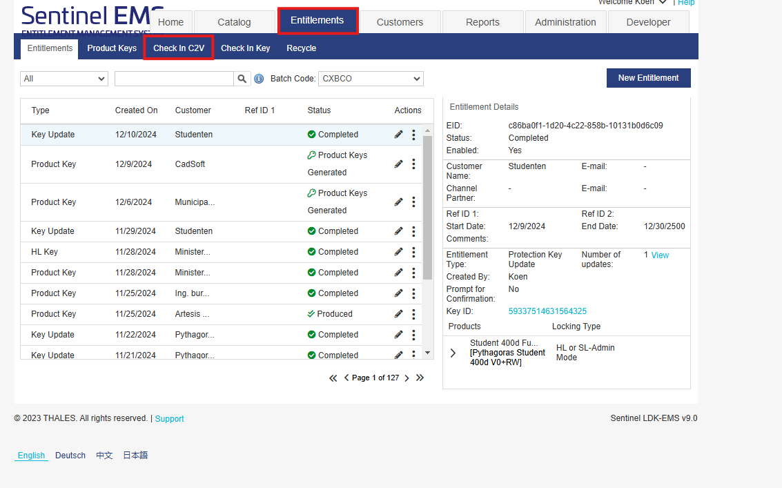 Vraag een c2v-bestand aan van de klant Canned response 'Require C2V'