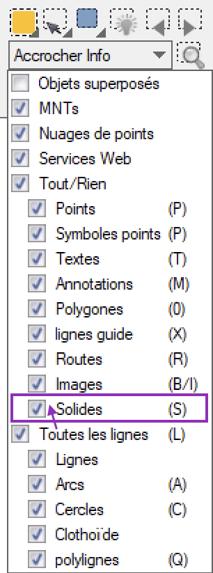 Cochez Solides (S) pour activer leur sélection et leur accrochage.