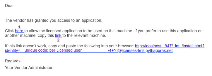 Accédez à vos e-mails et recherchez le message ayant pour objet : 'Your vendor has granted you access to an application', envoyé par sales@pythagoras.net.
