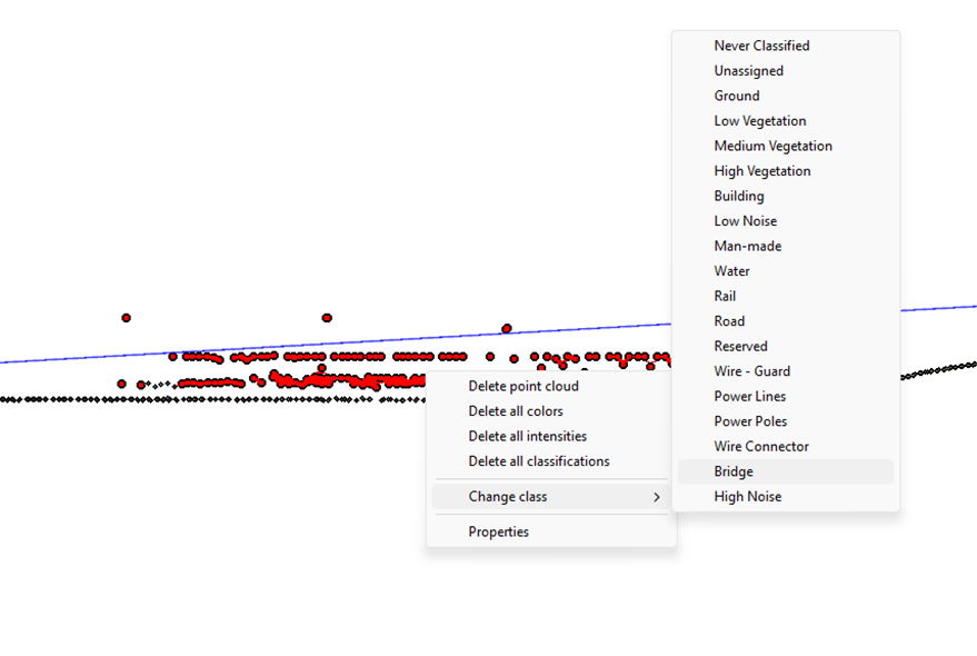 Je hebt specifieke delen van de puntenwolk manueel hergeclassificeerd in het 3D-venster, waardoor automatische classificaties verfijnd en gecorrigeerd worden met maximale controle en nauwkeurigheid.